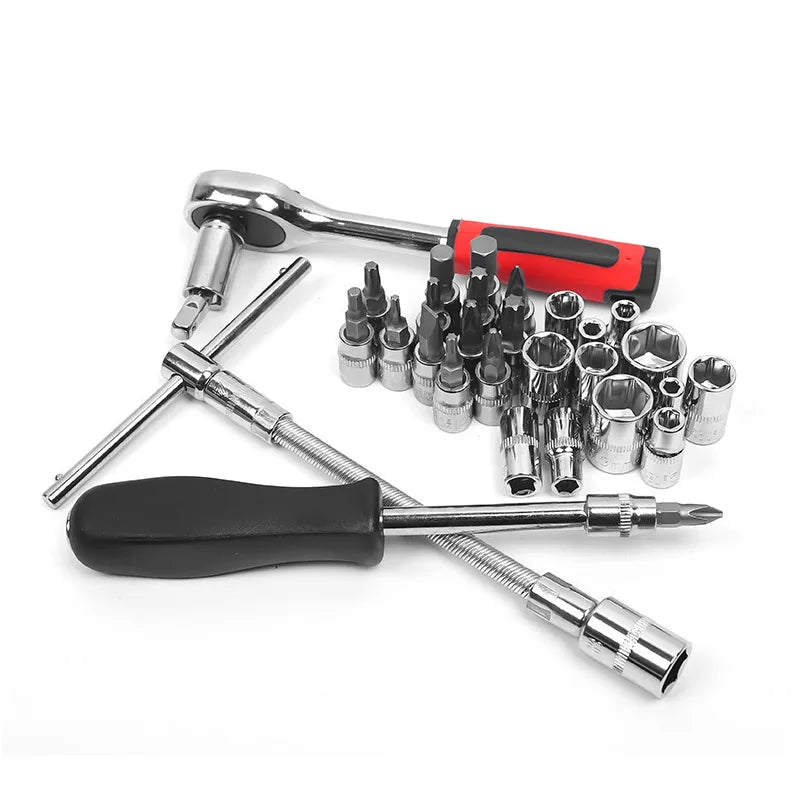 Améliorez votre boîte à outils avec notre jeu douilles pratique. Avec 63 pièces, il comprend un cliquet 1/2 et 1/4, des clés à cliquet mécaniques et plus encore pour faciliter la réparation de votre voiture. Une trousse à outils indispensable pour tous les mécaniciens professionnels ou amateurs.