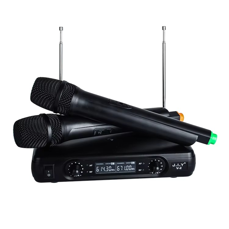 Microphone Dynamique Sans Fil Professionnel JIY V2 – Affichage Numérique, Émetteur VHF | Idéal pour Karaoké, Scène, Réunions