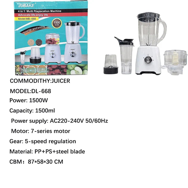 Simplifiez vos préparations culinaires avec cet appareil de cuisine 3-en-1, conçu pour offrir polyvalence et efficacité. Que ce soit pour hacher, mélanger, broyer ou extraire du jus, ce multi-mélangeur à grande vitesse est l’outil indispensable pour votre cuisine à domicile.